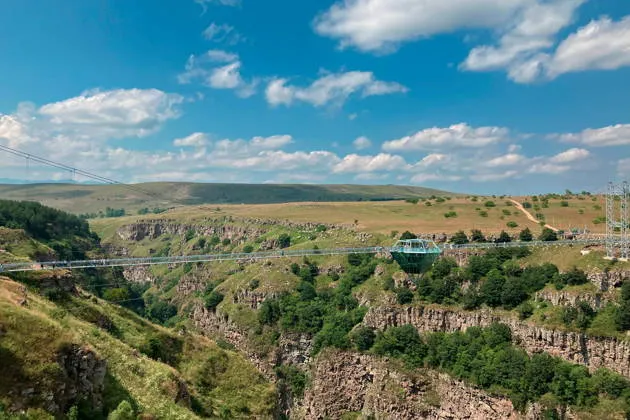 Это уникальное место славится своими базальтовыми скалами, образованными в результате древней вулканической активности, а также кристально чистыми водопадами, которые каскадами стекают по отвесным стенам каньона. Главной достопримечательность маршрута — Хрустальный мост — стеклянная конструкция, парящая над пропастью на высоте более 200 метров, с панорамным кафе в центре. Прогулка по мосту подарит дозу адреналина и захватывающие виды, от которых захватывает дух.