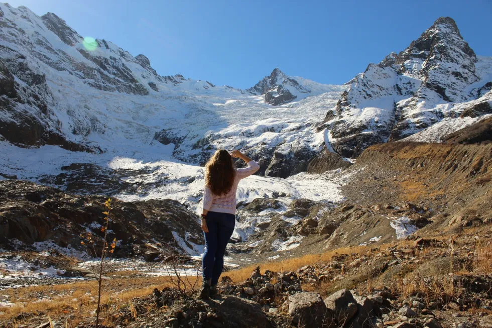 Домбай — это долина, по кругу ограниченная горами. Среди них и высочайшая точка Западного Кавказа – гора Домбай-Ульген (убитый зубр), высота 4047 м над уровнем моря.