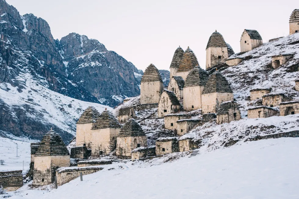 Древний некрополь Даргавс, расположенный на живописном склоне, стал местом последнего упокоения нескольких поколений горцев. И сегодня, гуляя улицами «города мертвых», в окошках отдельных склепов можно увидеть белеющие человеческие кости.