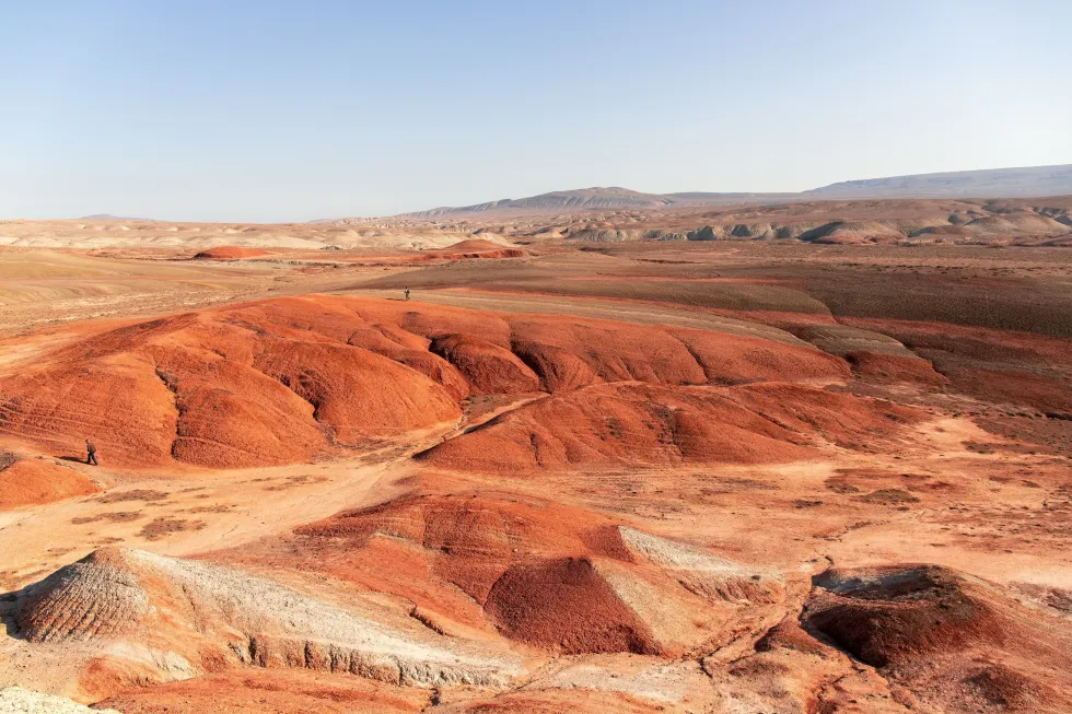 Далее маршрут проложен через Цветные горы Хызы — горные породы здесь имеют слои удивительных оттенков, образуя красочные пейзажи.