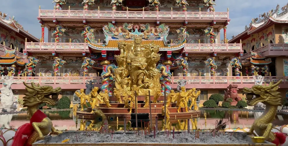В рамках нашего тура вы посетите стеклянный мост и Гранд-каньон Чонбури, сделав остановки на пути к храму Бога Китти Чалерм, известному также как «Святилище На Джа Са Тай Чи». Это четырехэтажное здание в китайском архитектурном стиле включает три основных здания и Зал Неба и Земли, а также 60 статуй Тай Суй для загадывания желаний по годам рождения.