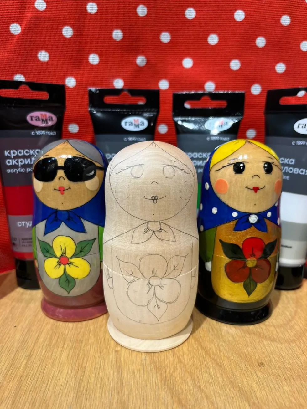 • роспись матрешек, которая производится по нанесенному рисунку, желающим проявить фантазию возможно предоставление пустой заготовки;