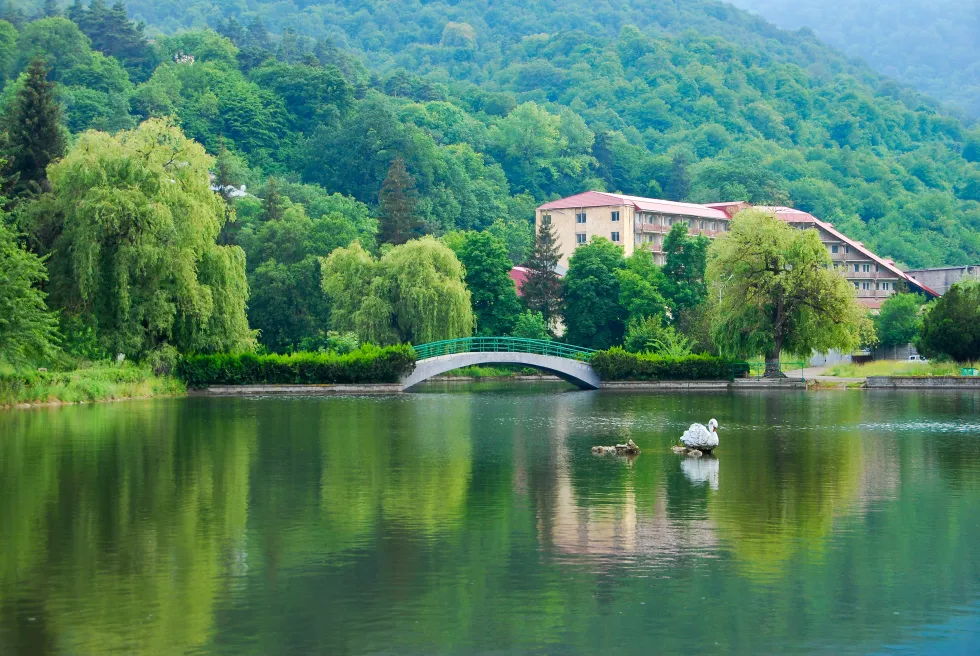Автомобильная экскурсия в зеленый Дилижан. Сфотографируемся у памятника героям фильма «Мимино», там же выпьем воды, которая по чистоте занимает второе место в мире, полюбуемся и подышим «зелеными легкими» Дилижана, и, конечно, посетим два прекрасных монастыря — Агарцин и Гошаванк.