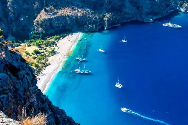Мы отправляемся из отелей рано утром, далее продолжим путь до яхты на пляже Олюдениз. Пересядем на яхту и через 40 минут, мы на месте — в долине бабочек, где вы спокойно проведете время в приятных, тихих бухтах.
