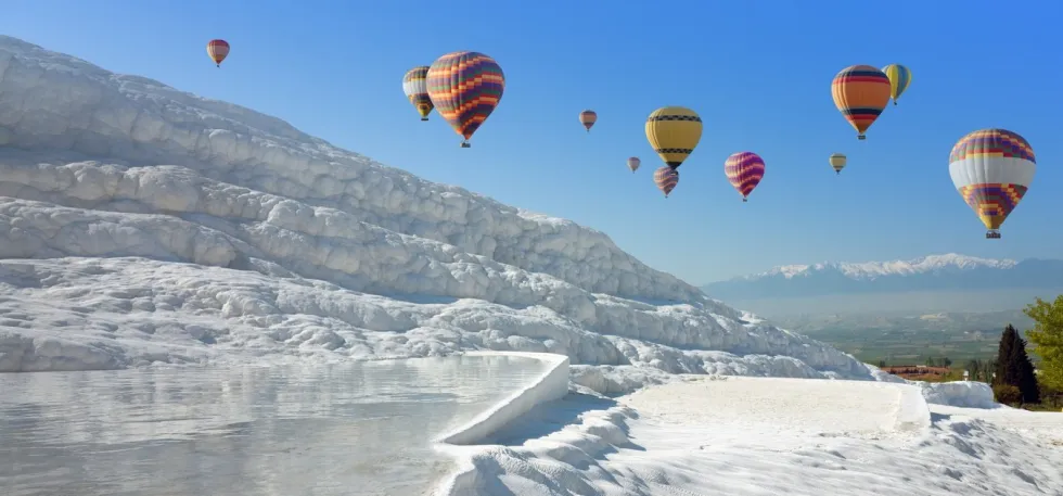 Вы можете совершить 35-минутную поездку на воздушном шаре над травертинами Памуккале и насладиться привилегированным видом с воздуха на уникальный ландшафт. Самая замечательная часть полета – наблюдать восход солнца над долинами и наслаждаться тостом с шампанским после благополучной посадки. Памятный сертификат о полете в Памуккале вы получите также после посадки.