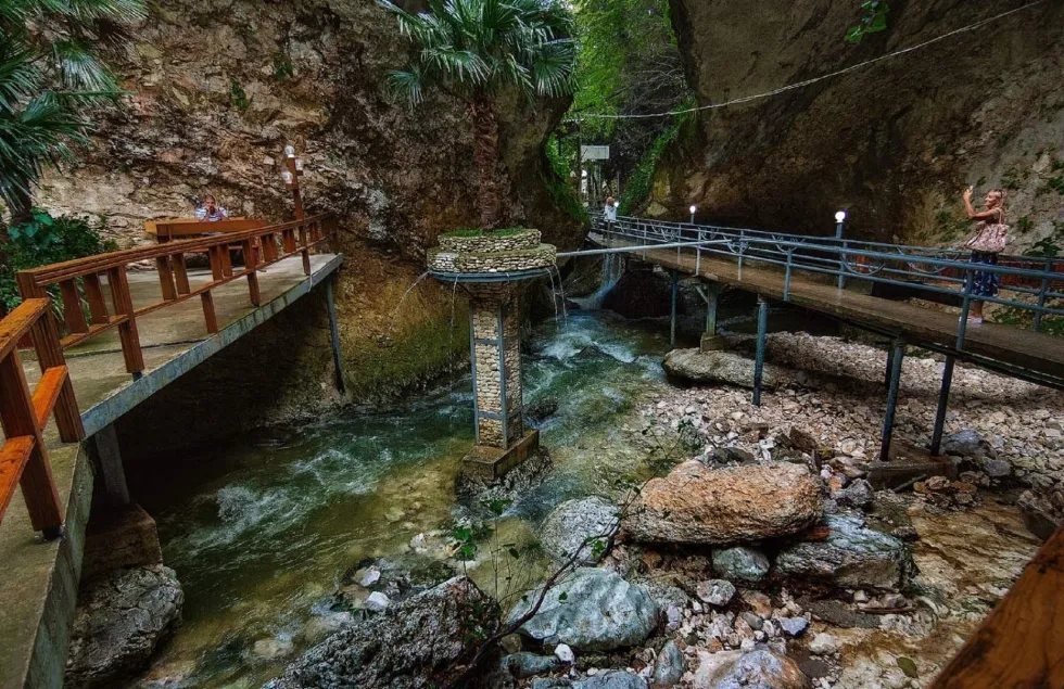 Вы посетите столицу Абхазии Сухум, побываете на набережной Махаджиров, увидите карстовое ущелье, заводь и водопады. А после обеда в ресторане искупаетесь в термальных источниках, где для вас предстанут 20 водопадов с разной температурой и гейзер с природной грязью.
