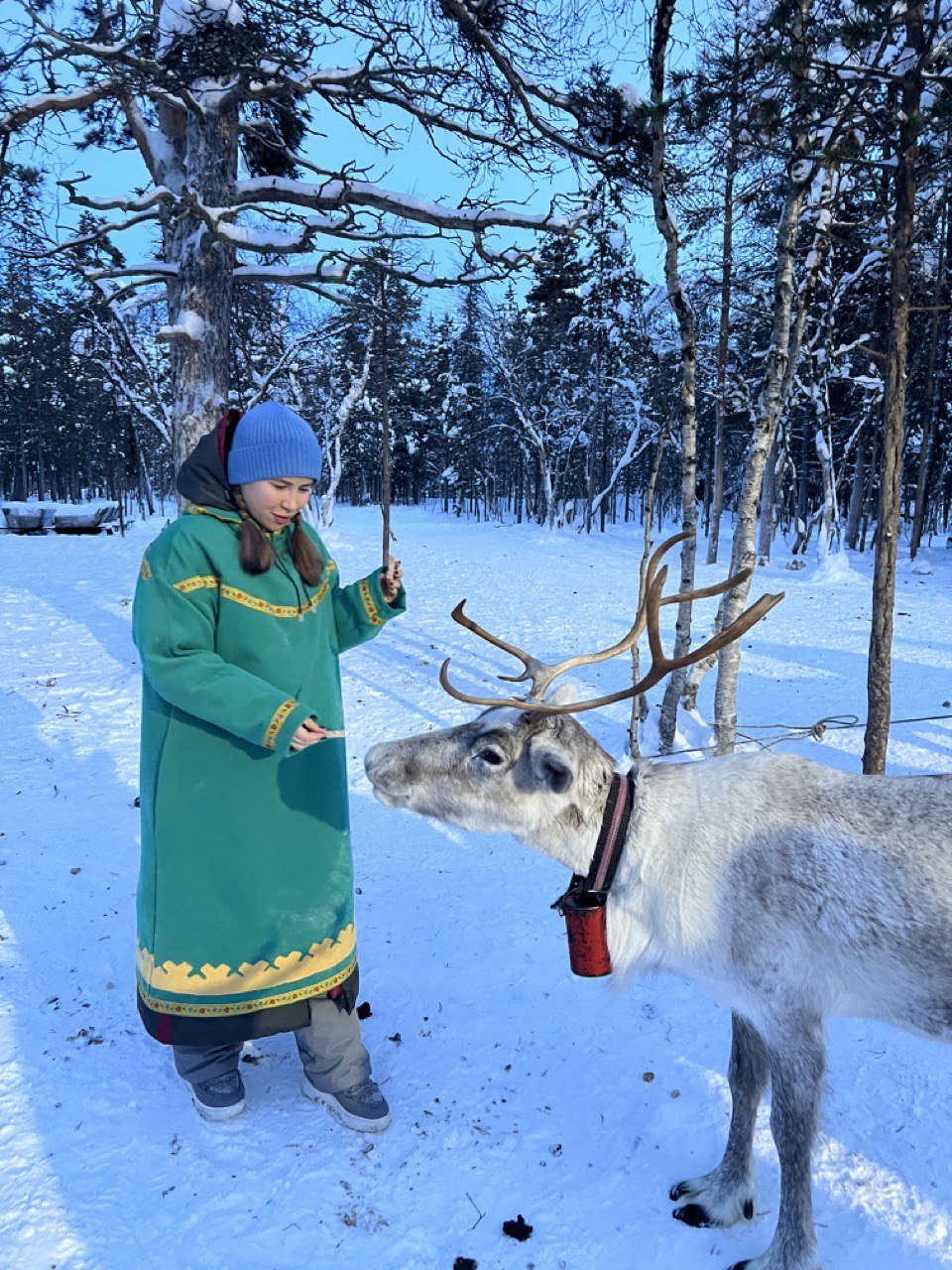 В программе: дегустация народных блюд, посещение питомника с оленями, енотами, хаски, лисами, песцами и кроликами, кормление оленей с рук, участие в традиционных играх саами.