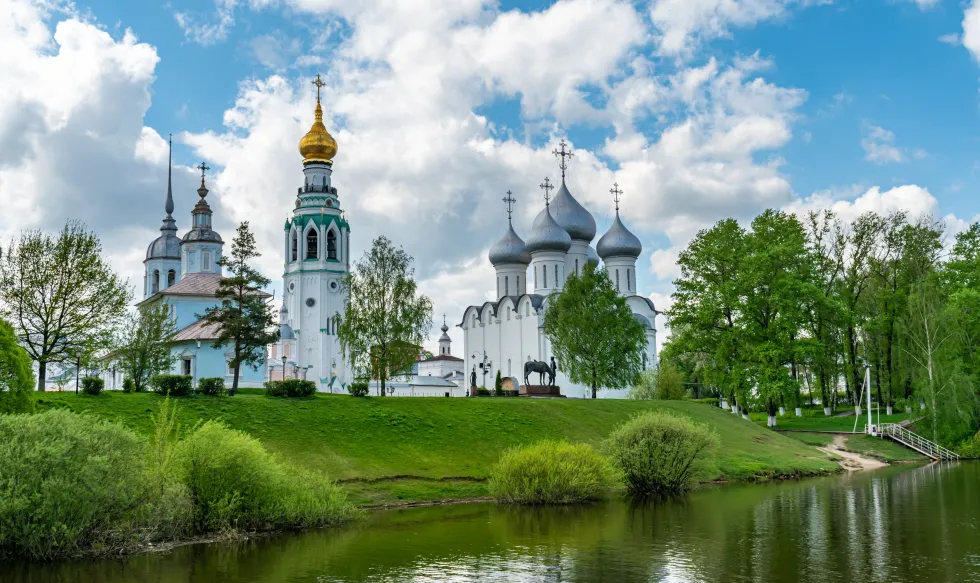• ощутим мощь самого сердца Вологды-Софийского собора с колокольней и Кремля.